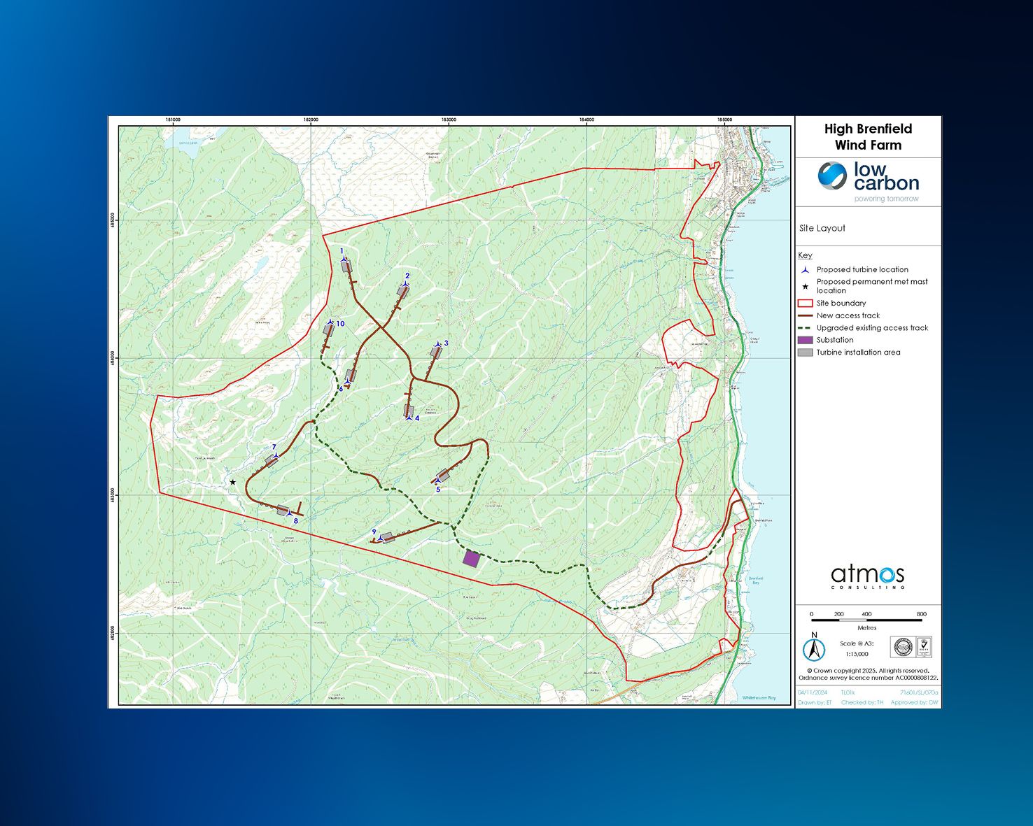 Since the public exhibitions in October, Low Carbon have completed all their on-site survey activities and are therefore able to confirm the final site access route and on-site substation location. Low Carbon have also confirmed that a Battery Energy Storage System (BESS) will not feature as part of the Section 36 application. Further updated information and figures related to the project can be viewed here www.highbrenfieldwindfarm.co.uk.