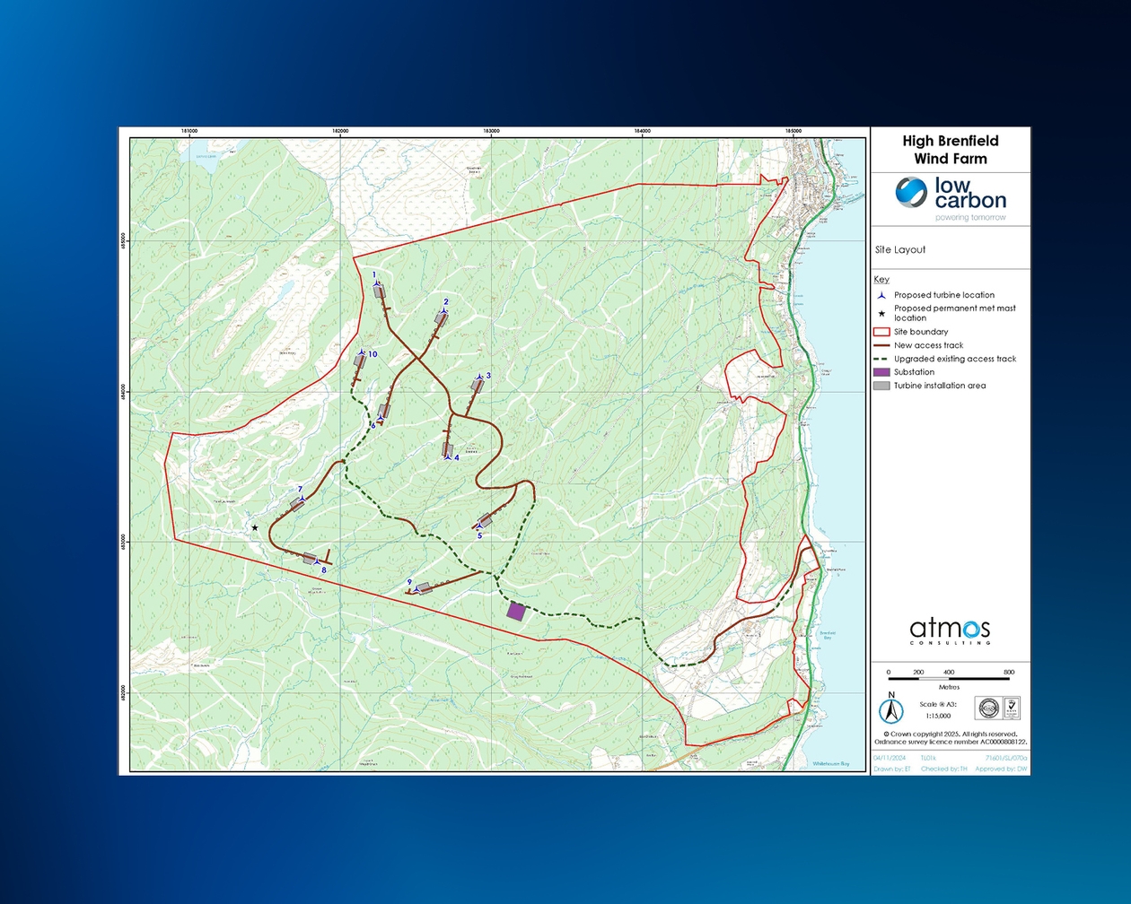 - Low Carbon has confirmed a further reduction of more than 25% in the number of turbines proposed for the High Brenfield Wind Farm project, located on land approximately 2km south-west of Ardrishaig, near Lochgilphead.